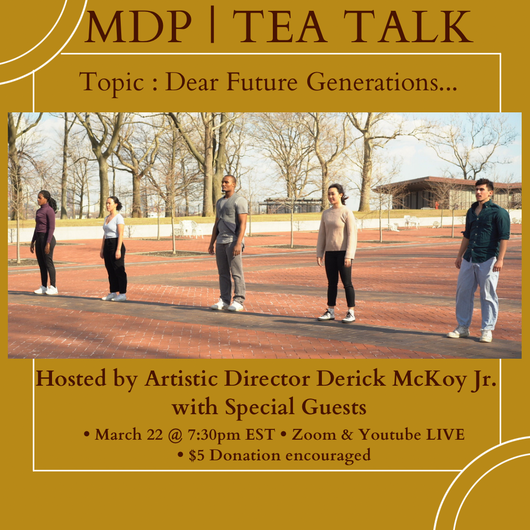 MDP | Tea Talks: America’s Truth spoke on the covert pressures that issues of race have had on our mental, physical, and spiritual health. Artistic Director Derick McKoy, Jr and Associate Director Mikaela S. Brandon fostered a honest space to detail how race shows up in our lives today and deliberated how we can become more aware of its influences in our decisions and relationships. Special Guests: Antuan Byers, Shaina McGregor, and Christian Warner